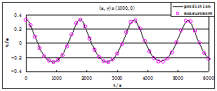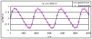 Fig.3 Comparison of time series of free surface water level at location (x, y) = (1000, 0).