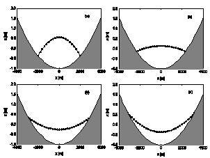 In such a basin, assuming a parabolic free surface, Thacker (1981) based on nonlinear shallow water equations, derived the following analytical solutions for the free surface elevation: