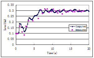 Fig.6 shows the comparison between experimental data and numerical results on the time evolution to water level during 20s at the measuring points in the pool. The numerical results agree well with the experimental data.