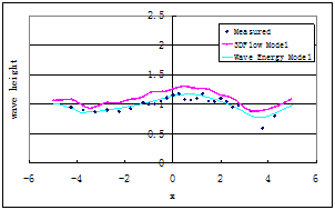 =0 cross section is shown in Fig.5, which begins at the second oscillation and covers a half-period. Good agreements are obtained by the present model, demonstrating the accuracy of the wet-dry boundary algorithm.