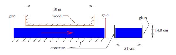 矩形断面宽W=0.51m,高h=0.148m,长度L=10m,底坡坡度S0=0,曼宁系数n=0.012。